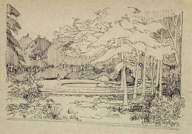 Uitbreiding Kröller-Müller Museum: situatieschets tuin en vijver (met begroeiing), date unknown