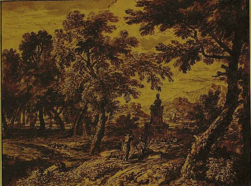 Forest Landscape with Figures near a Monument
