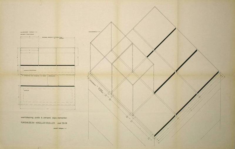 Werktekeningen voor de inrichting van zaal 29/34 van Rijksmuseum Kröller-Müller, 1970