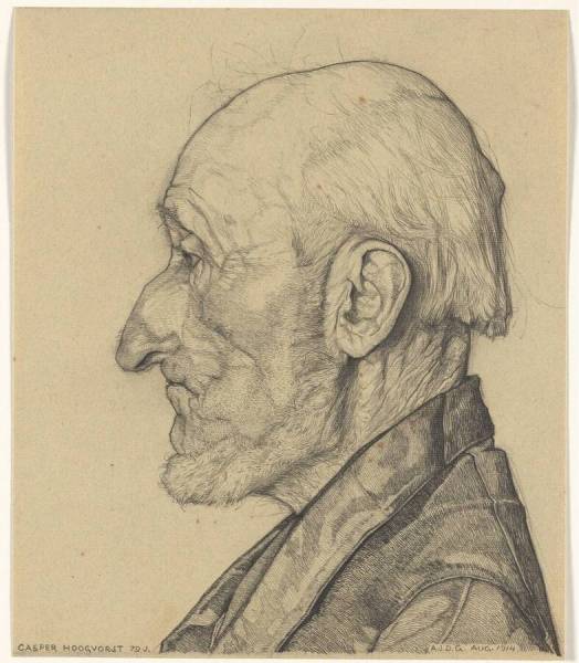 Portret en profil van Casper Hoogvorst (79 jaar), 1914