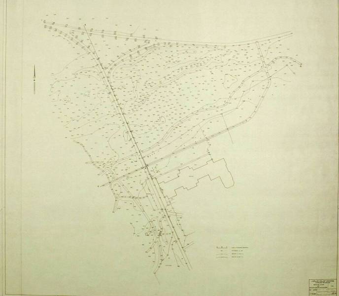 Bestaande situatie met hoogtecijfers en hoogtelijnen, August 1967