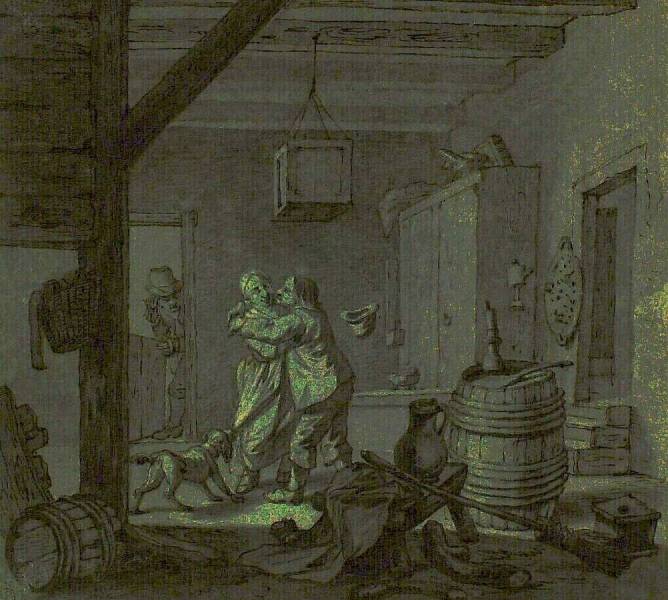 Vrijage in een boereninterieur, second half 18th - early 19th century