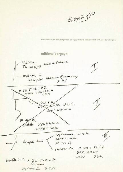 Opgave van de merken van TL-buizen in werken van Dan Flavin, 26 April 1970