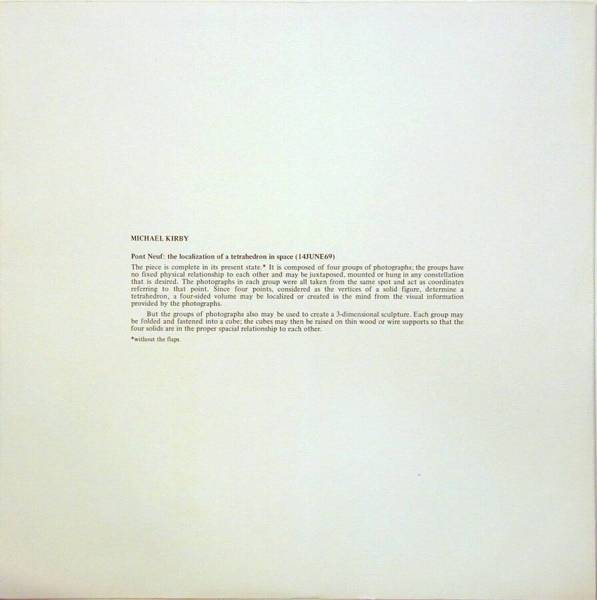Pont Neuf: the Localization of a Tetrahedron in Space, 1970
