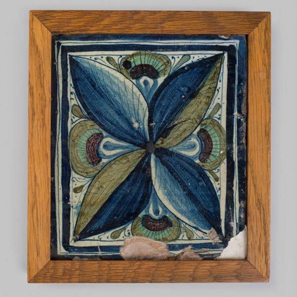 Tile: Leaf Motifs in Green, Blue and Purple