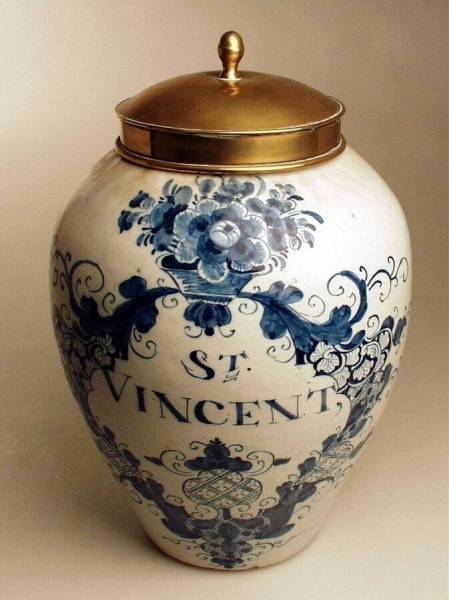 earthenware (faience: Delft blue) and copper