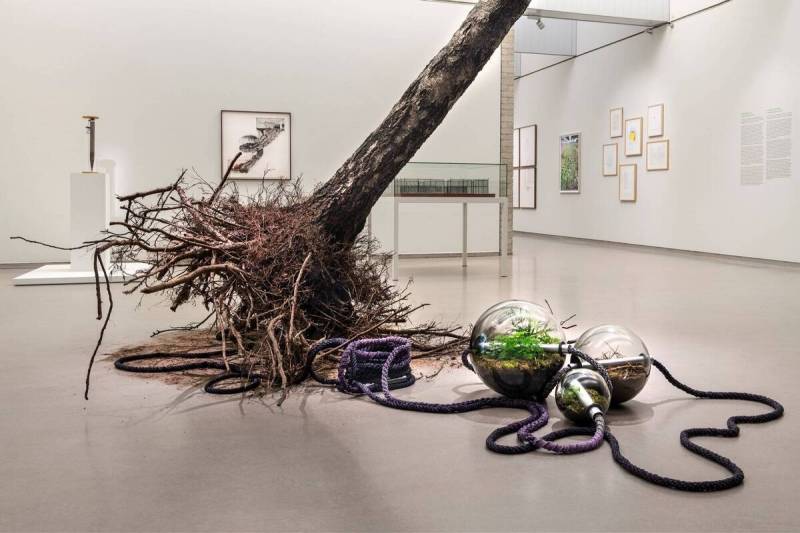 handmade ropes, 3 Murano glass, tree trunk, metal connectors, clay granules, lava stones, activated carbon, soil, plants