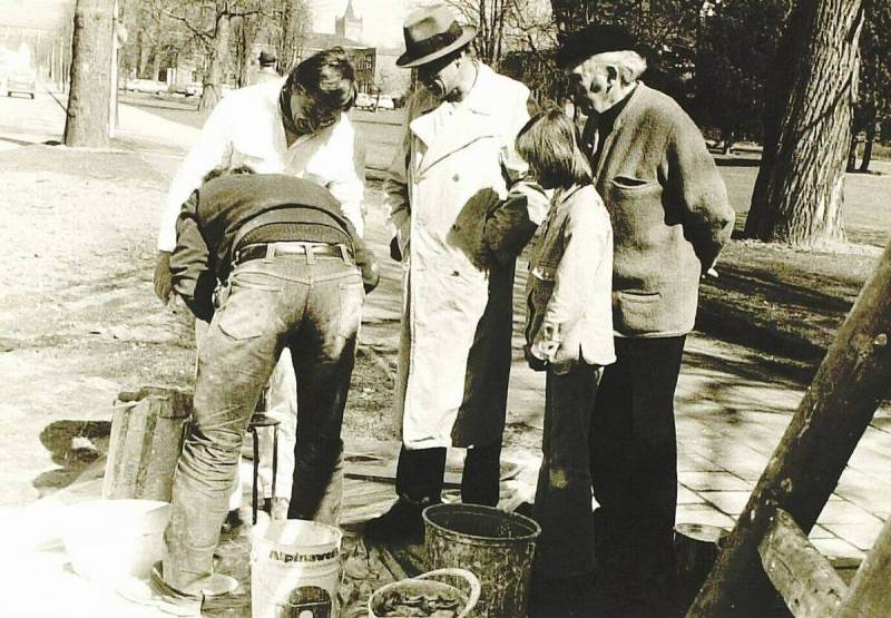 Joseph Beuys bij het gedenkteken van trofeeën in Kleef, 1976