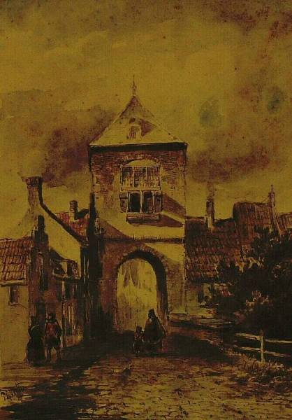 Gezicht op een stadspoort, 1845