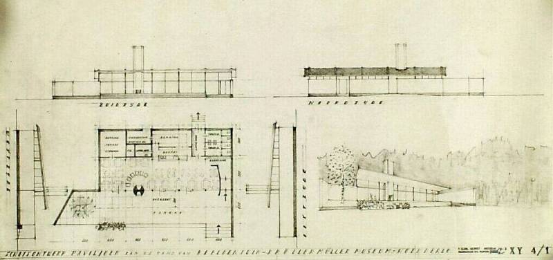 Schetsontwerp voor paviljoen aan de rand van de beeldentuin, date unknown