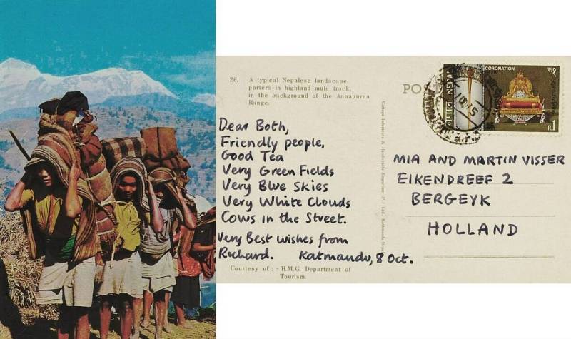 Ansichtkaart aan Mia en Martin Visser, 8 October 1975