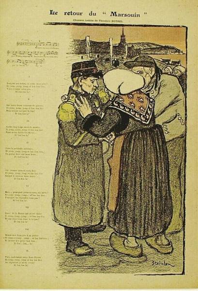 Illustration for 'Le retour du Marsouin' by Théodore Botrel, in Gil Blas Illustré, 8 March 1896