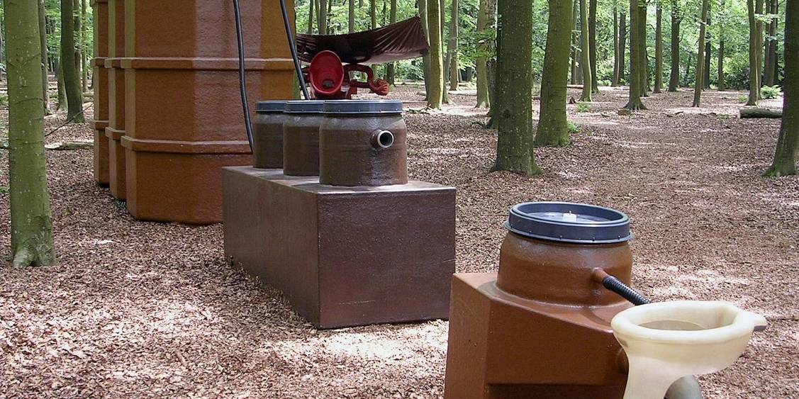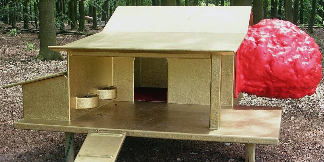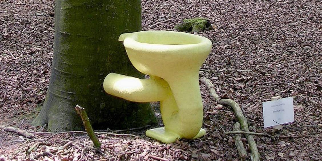 A large section of the sculpture garden, including the events’ terrain and the adjacent sculpture forest, is adorned with ‘organ sculptures’ and mobile homes of brightly coloured polyester – a trademark of AVL – that bear titles such as Workshop for Weapons and Bombs, Wombhouse, Skull and Septic tanks. All the works are allowed to be touched and often even entered. Wombhouse, for example, is equipped with a bathroom, kitchen, bedroom and a minibar. There is also an ice cream cart.