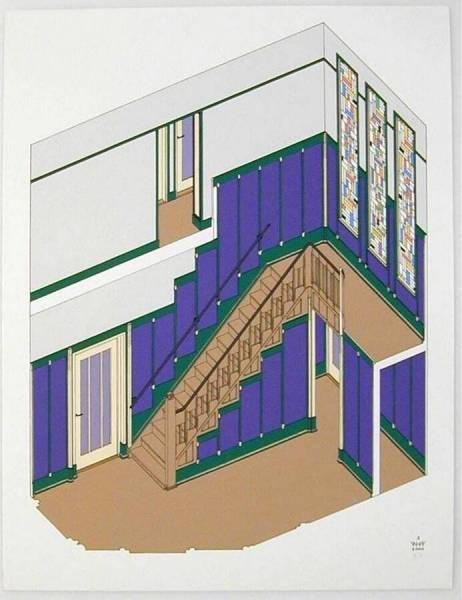 Reconstructie van de kleurvormgeving van Theo van Doesburg voor de hal van het Huis De Lange, Alkmaar, 1917, 2002
