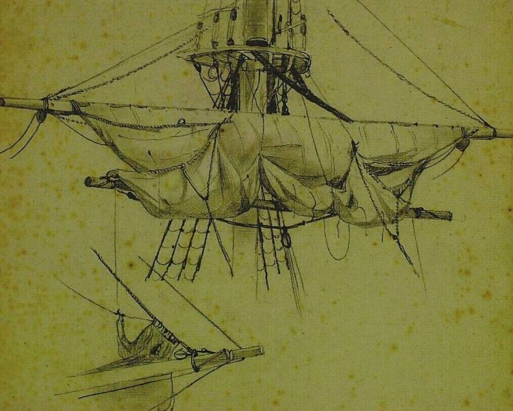 Een mast met ra, 1842