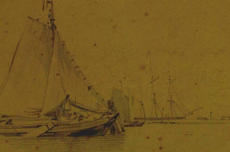 Vissersboot en schepen op de achtergrond, 19th century