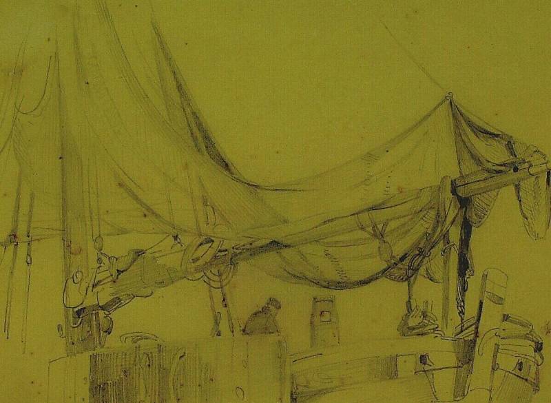 Fragment van zeilboot, zeilen drogende, 1866