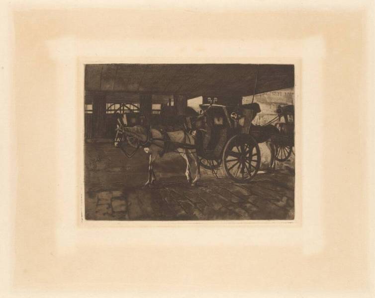 Carriages with Horses under a Bridge
