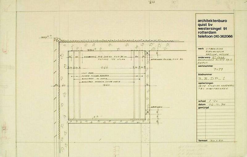 Uitbreiding Kröller-Müller Museum. Doorsnede ruimte 17-C depot, 24 October 1975