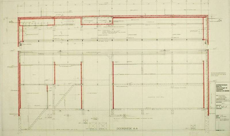 Plattegrond en doorsnede filmcabine in auditorium, 31 October 1975