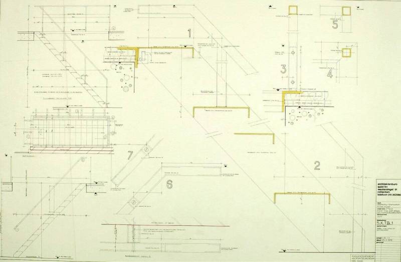 Stalen trap met details t.p.v. ruimte 26 (bergruimte repro), 25 February 1976