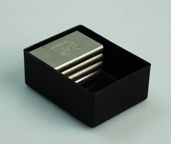 Doos met vier metalen blokjes, ongedateerd