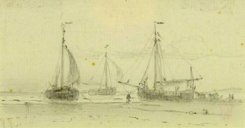 Schepen bij een strand, circa 1864