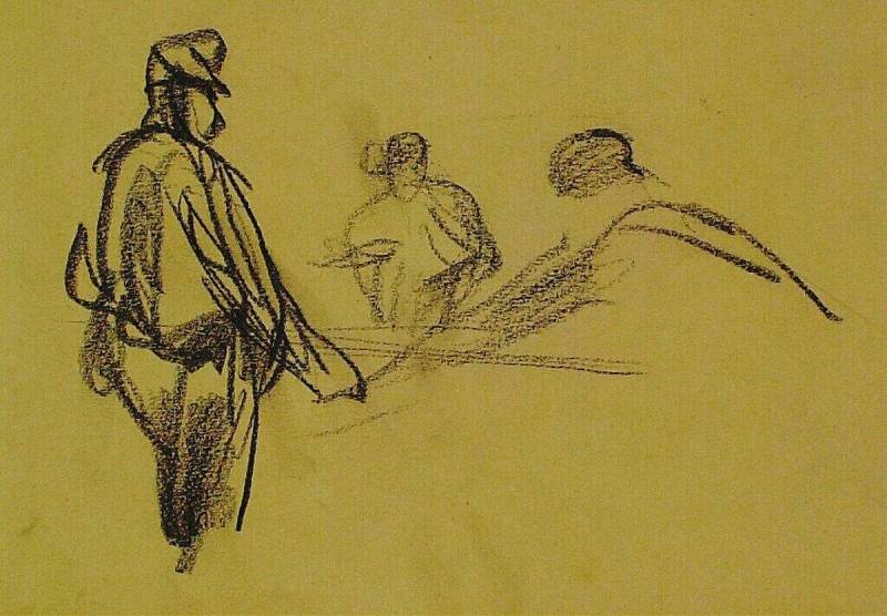 Drie mannen (biljartend), circa 1888