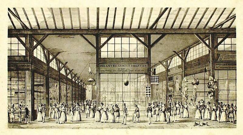 Een menigte elegant geklede mensen, die in een winkelgalerij flaneert, ongedateerd