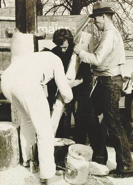 Joseph Beuys bij het gedenkteken van trofeeën in Kleef, 1976