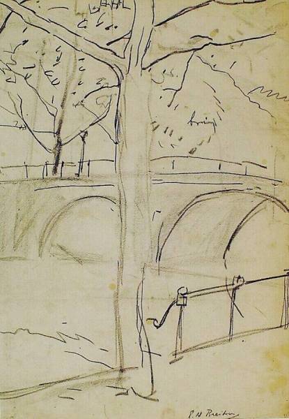 Studie voor schets schilderij Reguliersgracht, eind 19de - begin 20ste eeuw