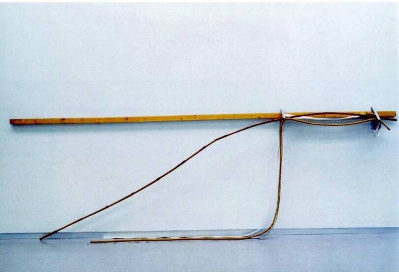 kleurenfoto's (chromogeen PE-papier) op linnen, houten balk, bamboe stok, touw, metaal