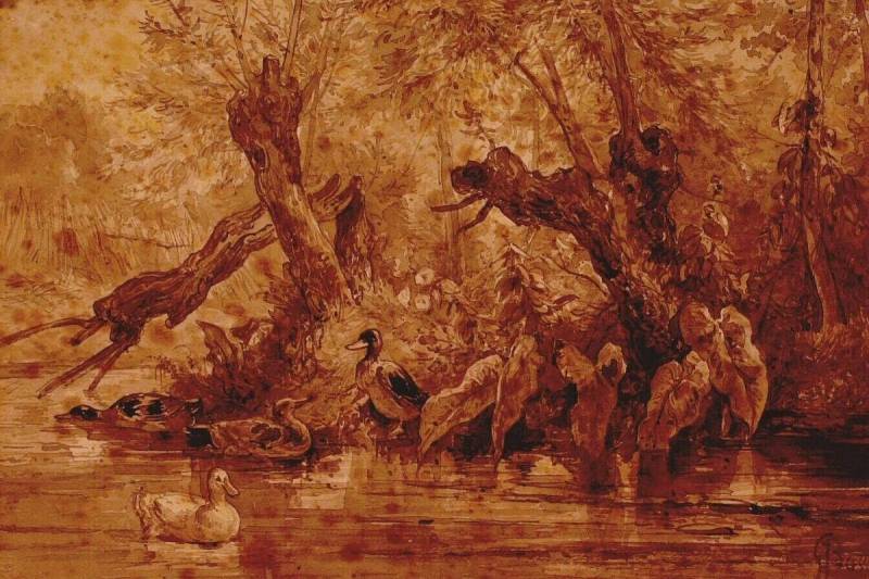 Eendenslootje met wilgen en pijlkruid, circa 1840