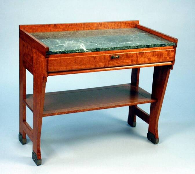 teakhout (gepolitoerd) met groen, marmeren blad