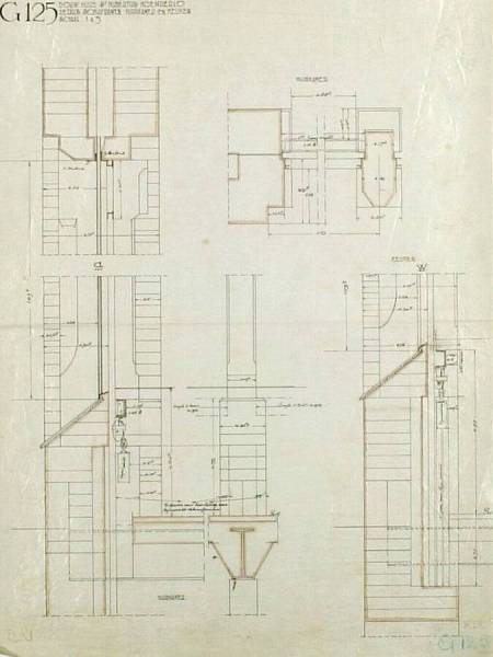 Details schuiframen huiskamer en keuken, 1913-1919