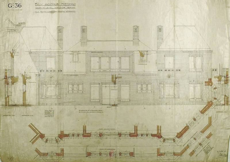 Gedeelte gevel oostzijde (alle metselwerken in staand verband), 23 oktober 1916