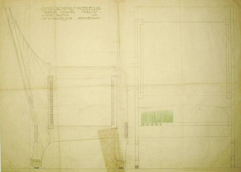 Meubelen zitkamer mevrouw: schets fauteuil op ware grootte, circa 1910-1920