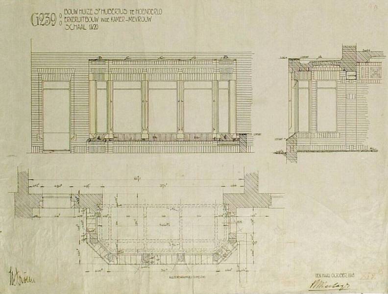Ontwerp erkeruitbouw in de kamer (van) mevrouw (Jachthuis St. Hubertus), oktober 1918