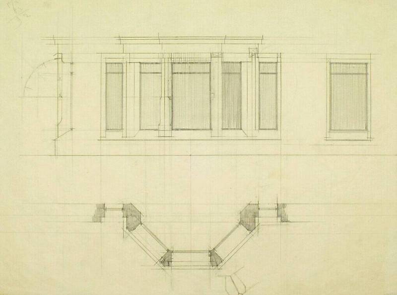 Ontwerp jachthuis St. Hubertus: erkeruitbouw in de kamer (van) mevrouw, 1918
