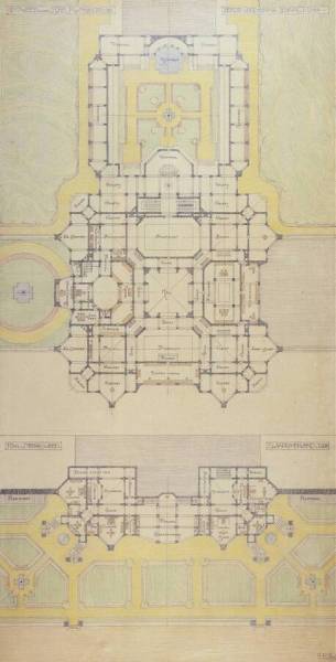 Ontwerp voor het museum bij de Franse Berg, eerste verdieping, terrasverdieping, slaapkamerverdieping, december 1917