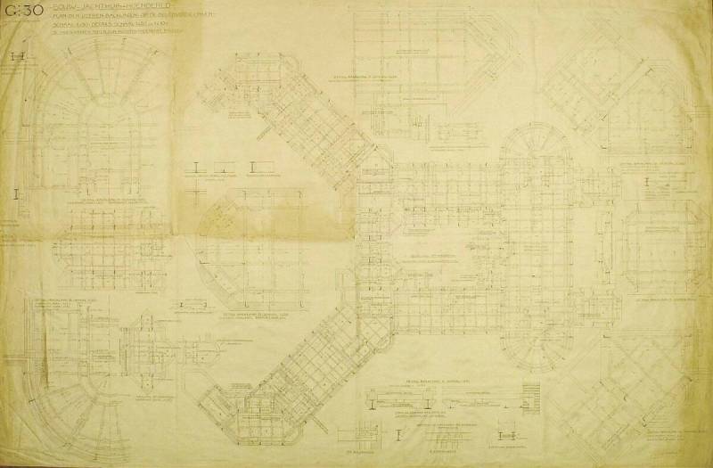 Plan der ijzeren balklagen op de bovenverdiepingen, 14 september 1916