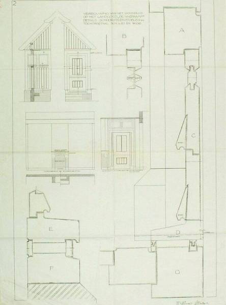 Plan voor de verbouwing van het woonhuis op het landgoed 'De Harskamp', details schoorsteenstoelen en tochtportaal, november 1913