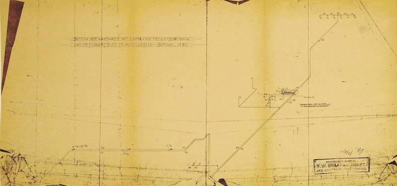 Schema der warmwatertapleiding voor het dienstgebouw van het jachtslot te Hoenderloo, 11 augustus 1947