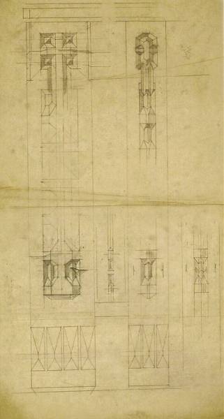 Schets van oplegwerk/uitsnijwerk van een meubelpaneel of deurpaneel, of: pendant van schoorsteenmantel, 1913-1919