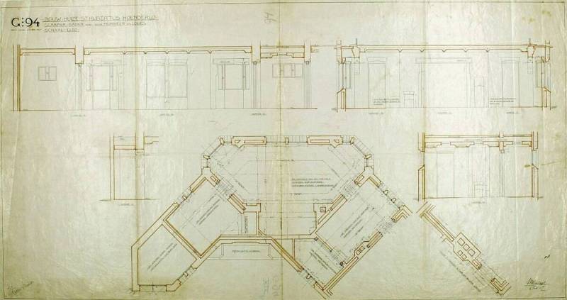 Slaapkr., badkr. enz. voor mijnheer en logés (plattegrond en wanden), 2 februari 1917