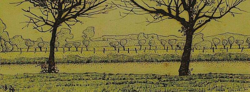 Landschap met een riviertje en twee bomen op de voorgrond, 6 augustus 1912
