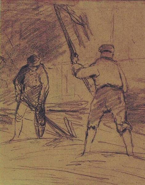 Twee dorsende boeren, 19de eeuw