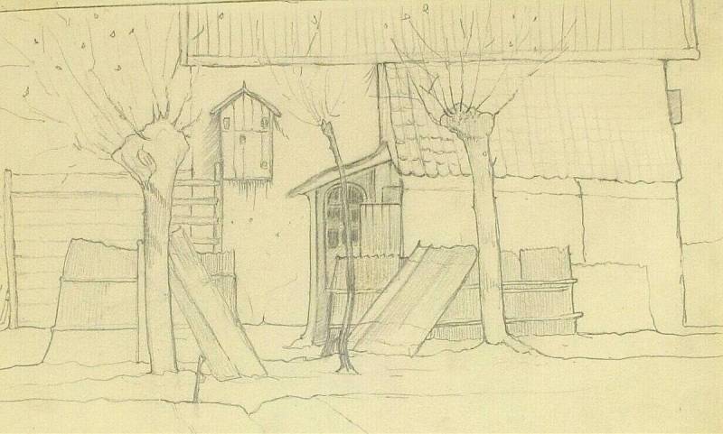 Huisje met wilgen en duiventil, eind 19de - begin 20ste eeuw