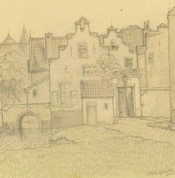Oude huisjes met brug, eind 19de - begin 20ste eeuw