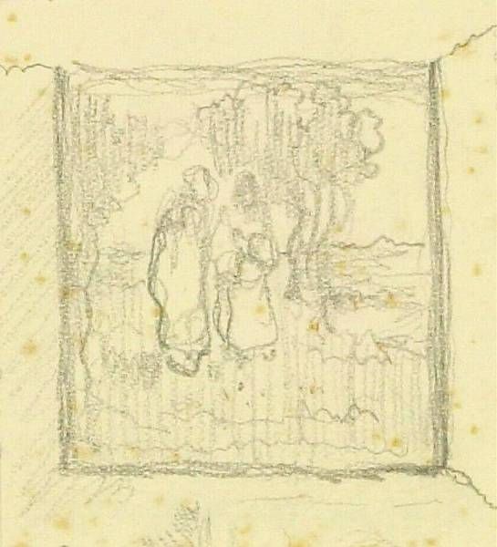 Twee figuren en bomen, eind 19de - begin 20ste eeuw